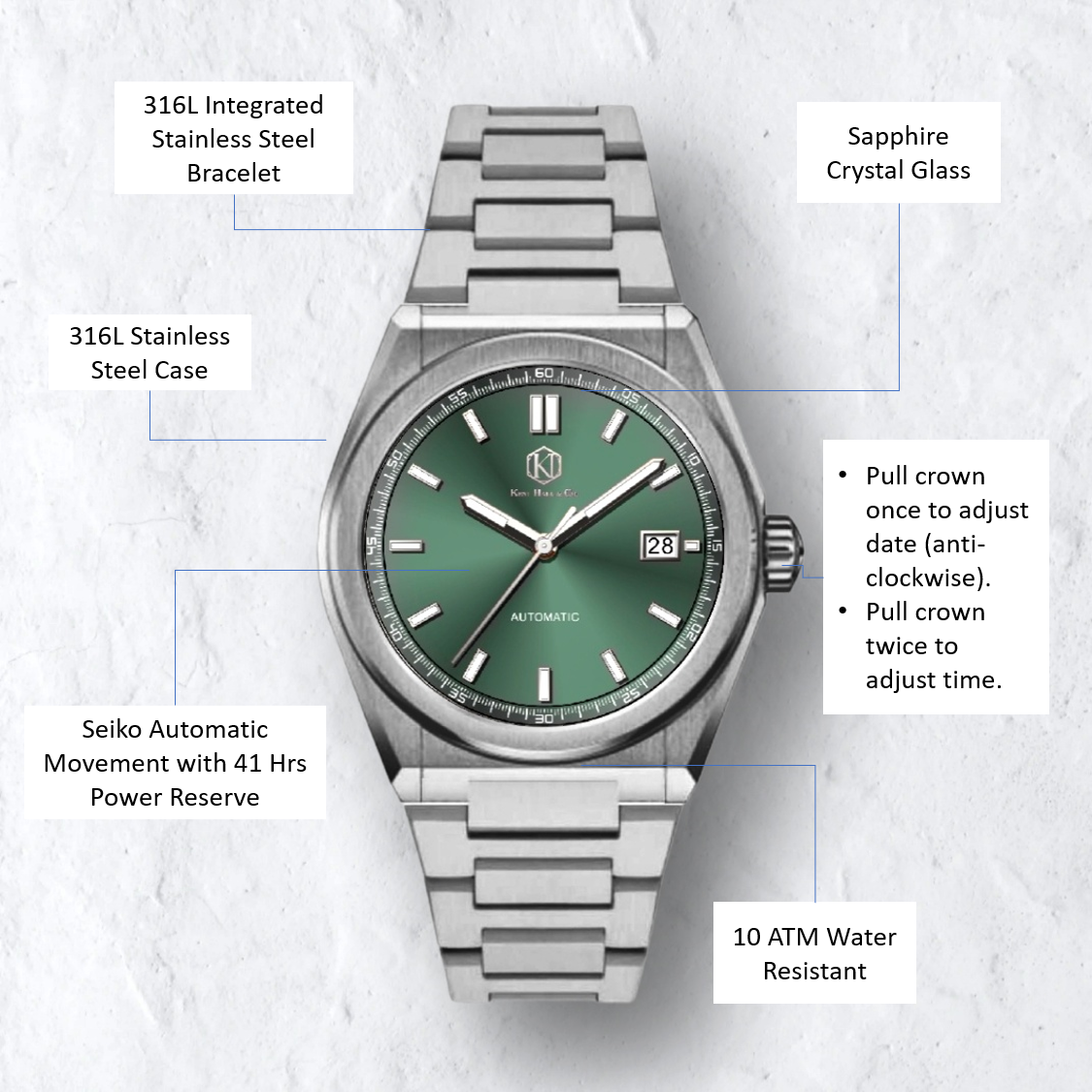 Encased in 316L Stainless Steel Case, the watch is a pleasure to behold.