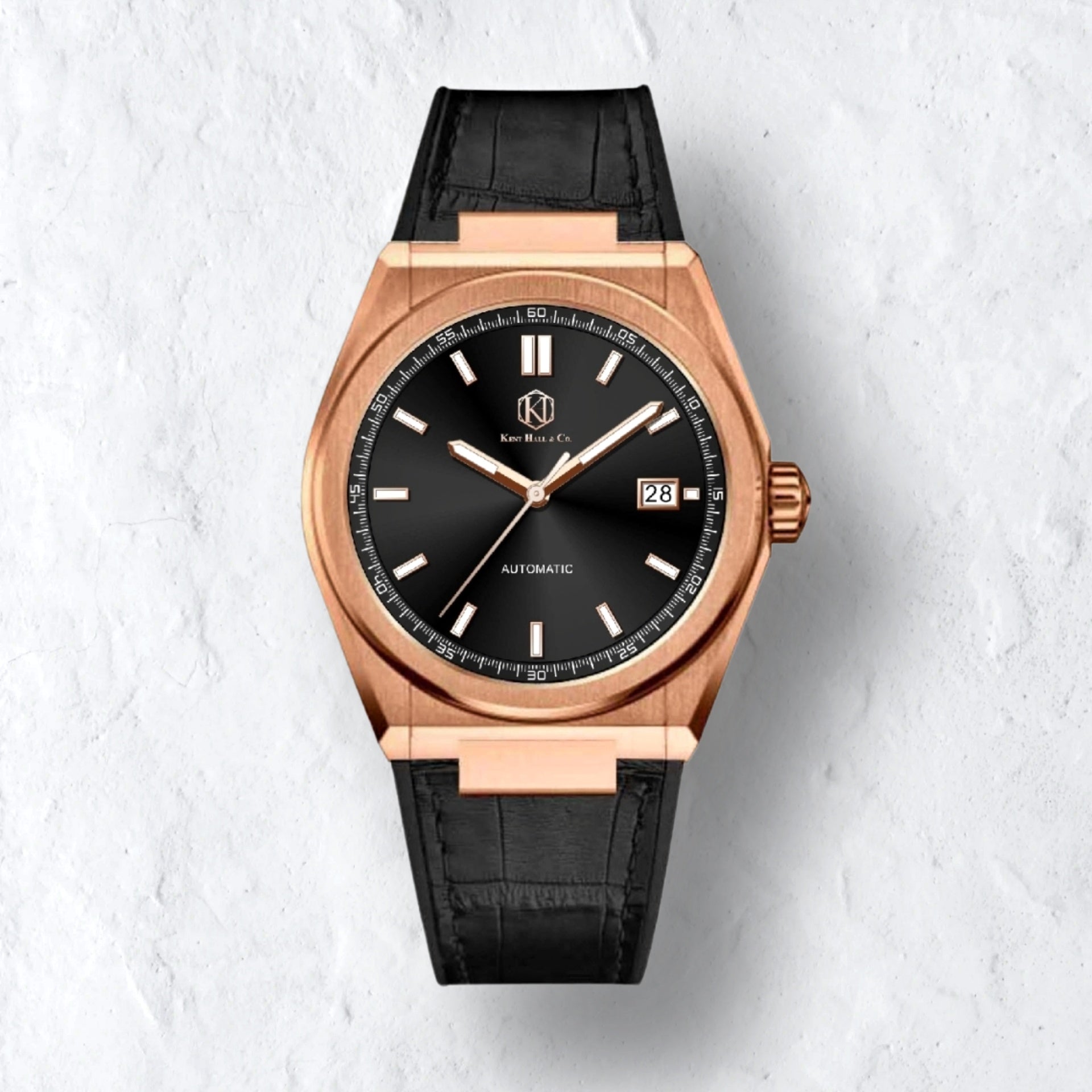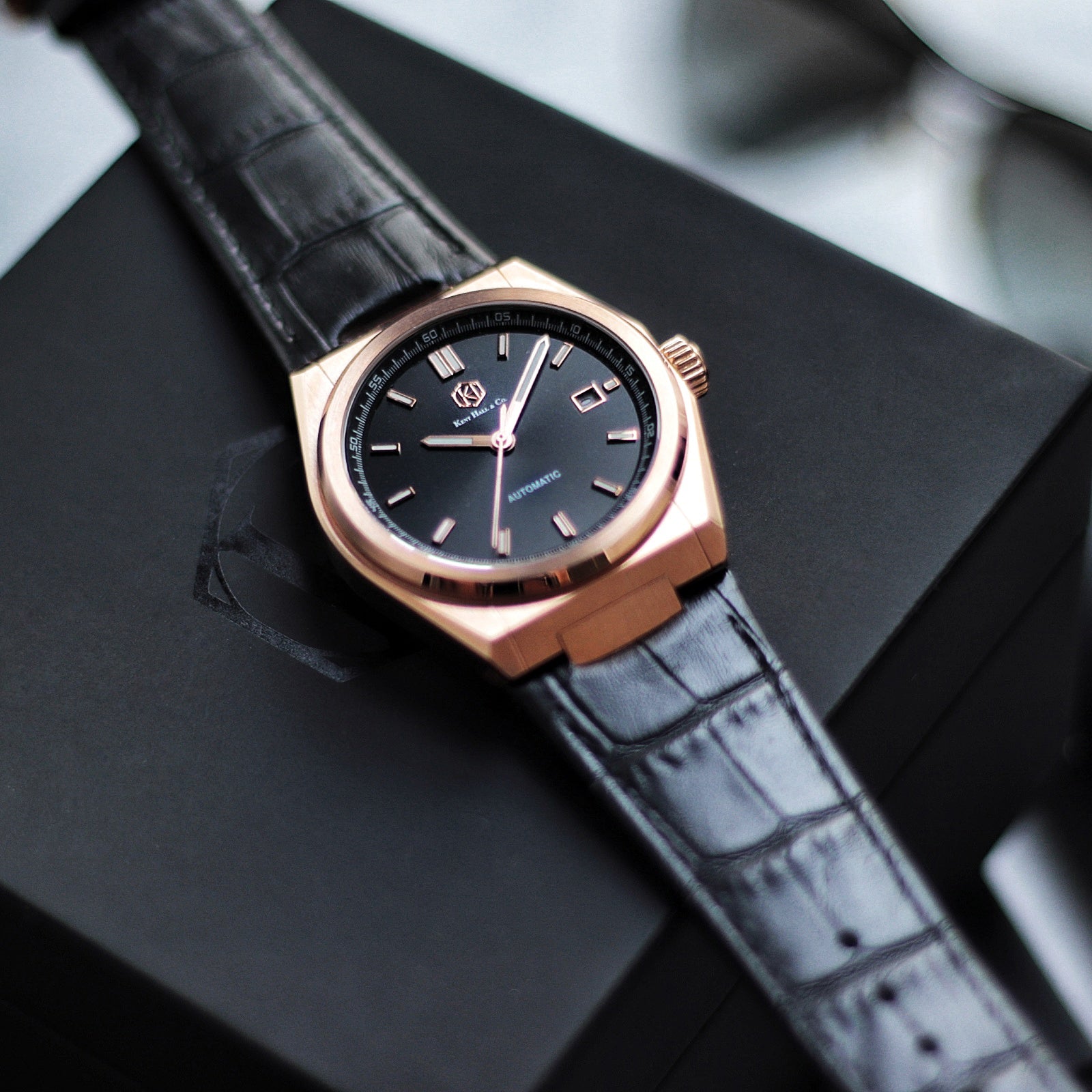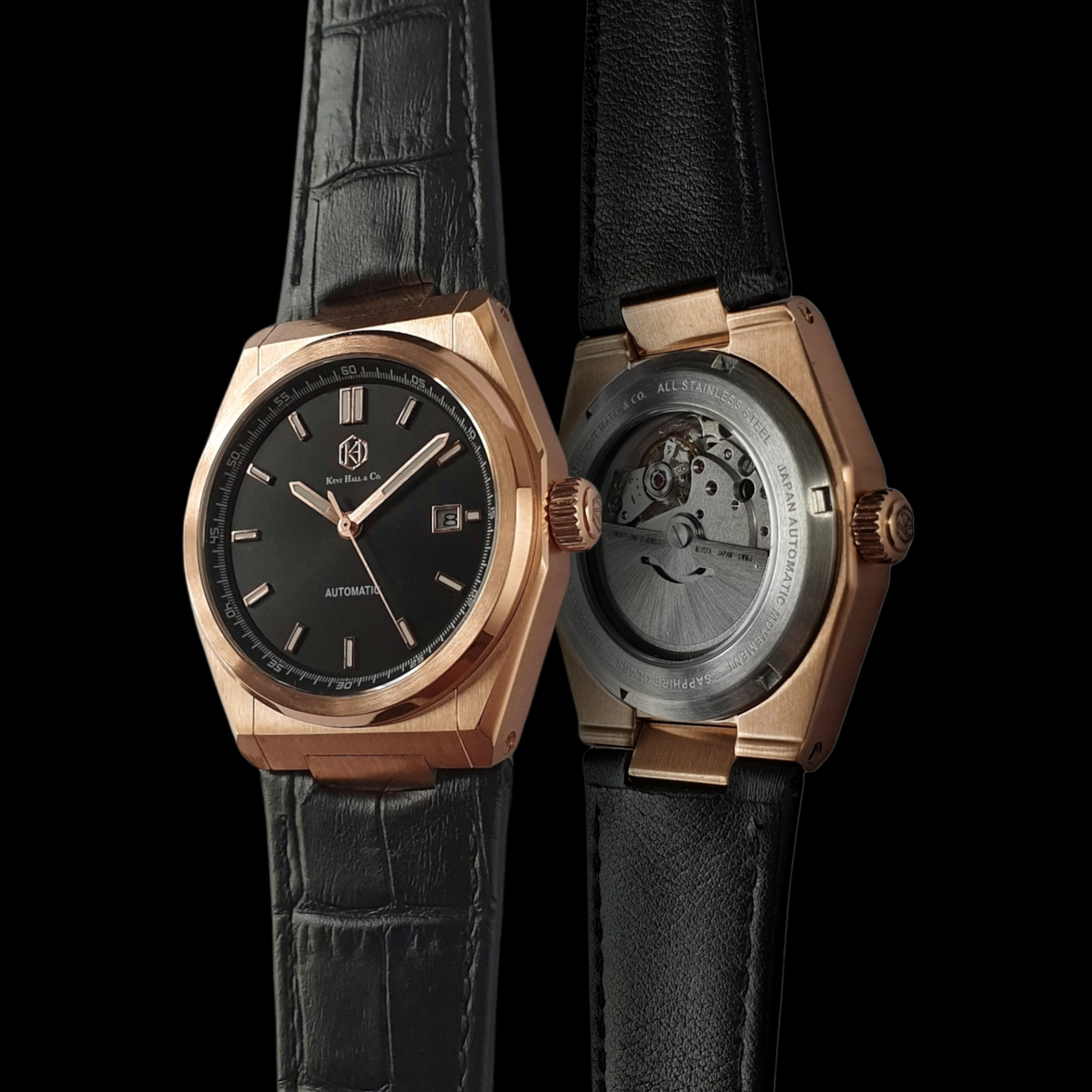 Obsidian Rose Gold - Black Leather
