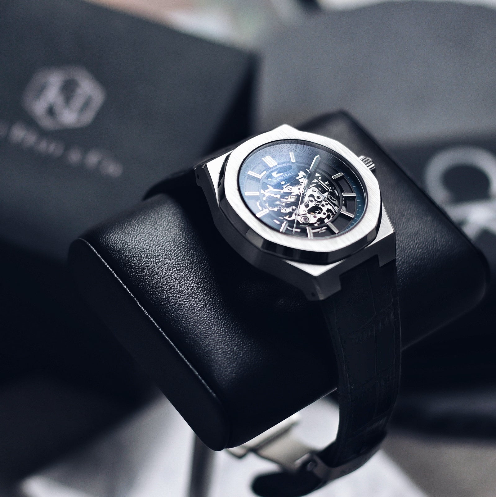 Expertly crafted with a contemporary urban aesthetic, the Philosopher Black Leather watch boasts a stainless steel construction with a scratch-resistant sapphire glass. Featuring a skeleton watch design and powered by a reliable Japan automatic movement with 42 hours of power reserve, it offers both style and functionality. Elevate your timepiece collection with this sleek and sophisticated watch.