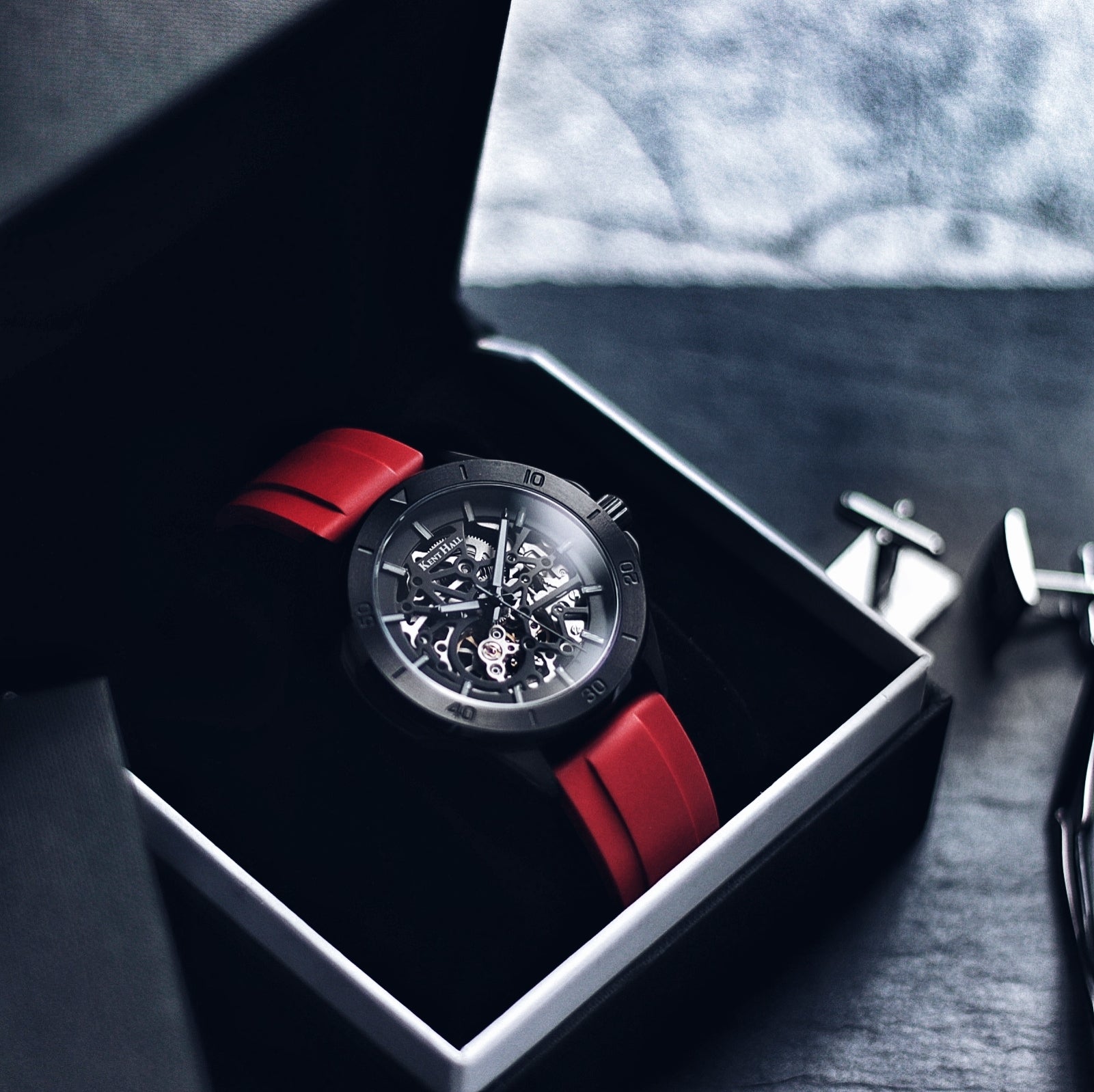 ✔ Sapphire Crystal Glass. Ultra scratch-resistant sapphire crystal glass allows you to marvel at the full mechanics of the timepiece without worries of scratching the surface.