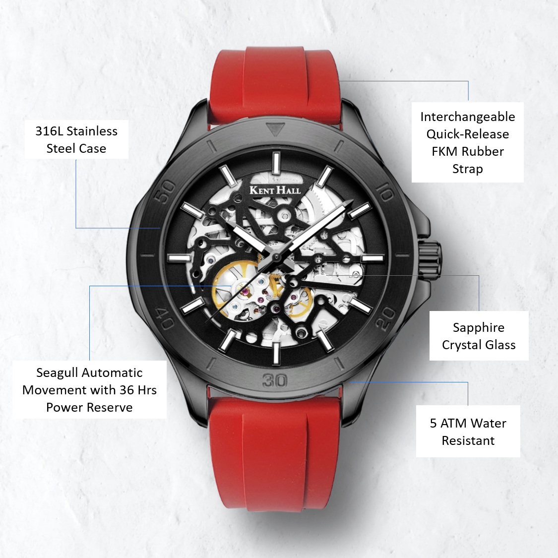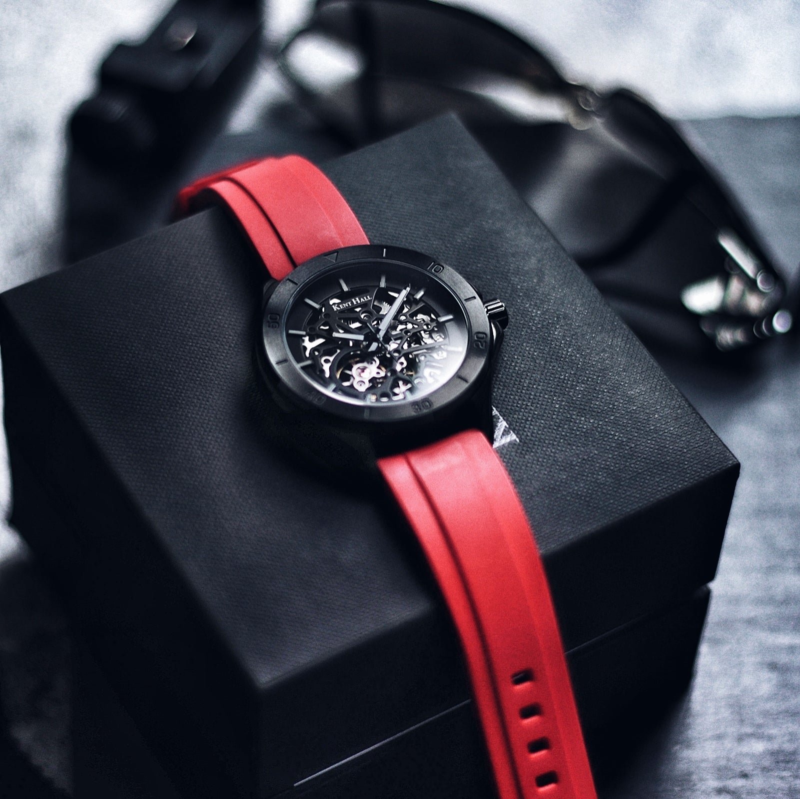 This model is equipped with FKM (Fluoroelastomer) rubber watch straps, which are known for their durability and comfort. They offer the perfect balance of toughness and flexibility, making them an ideal choice for those who lead an active lifestyle. Additionally, FKM rubber watch straps are resistant to water and not prone to attract dust, making them ideal for everyday wear.