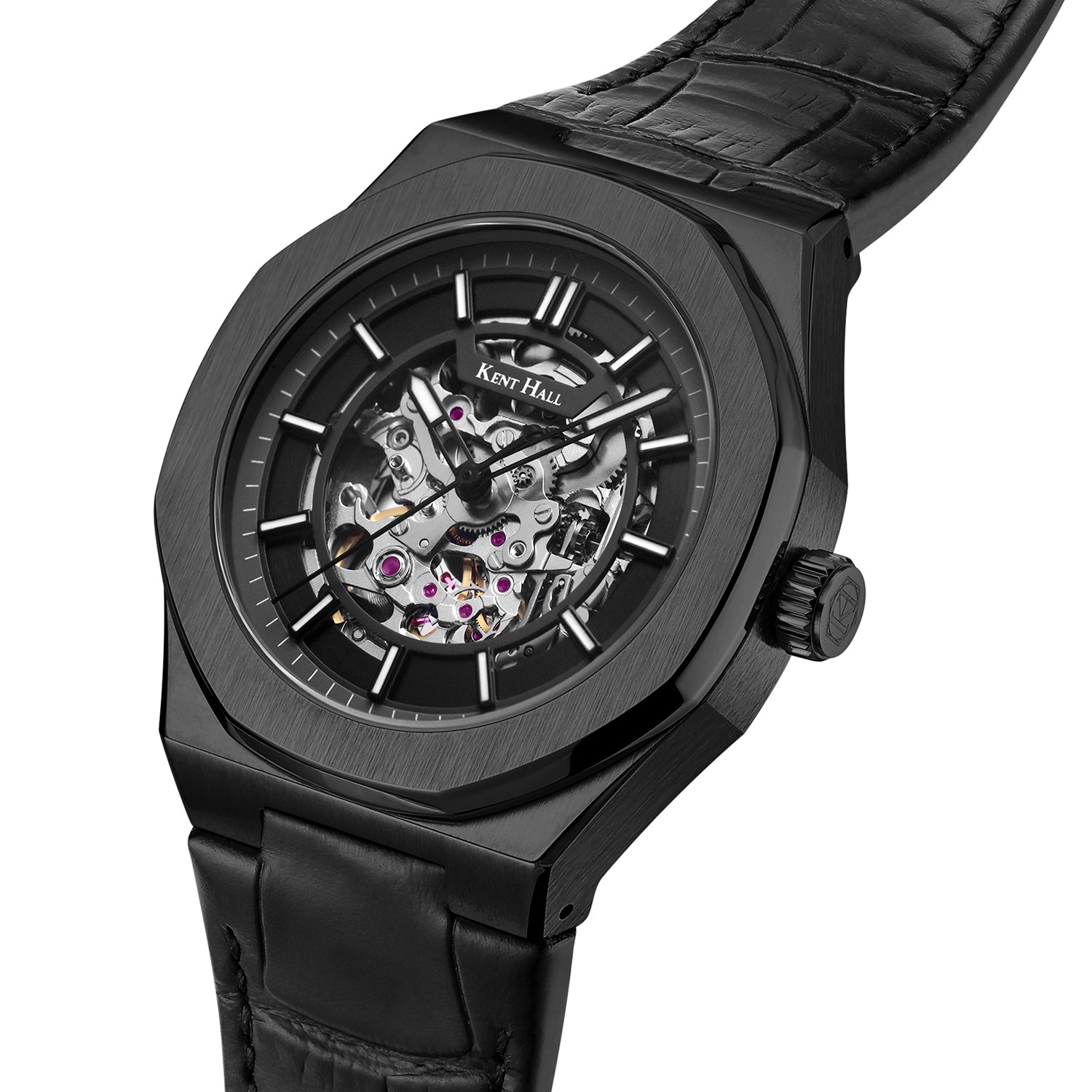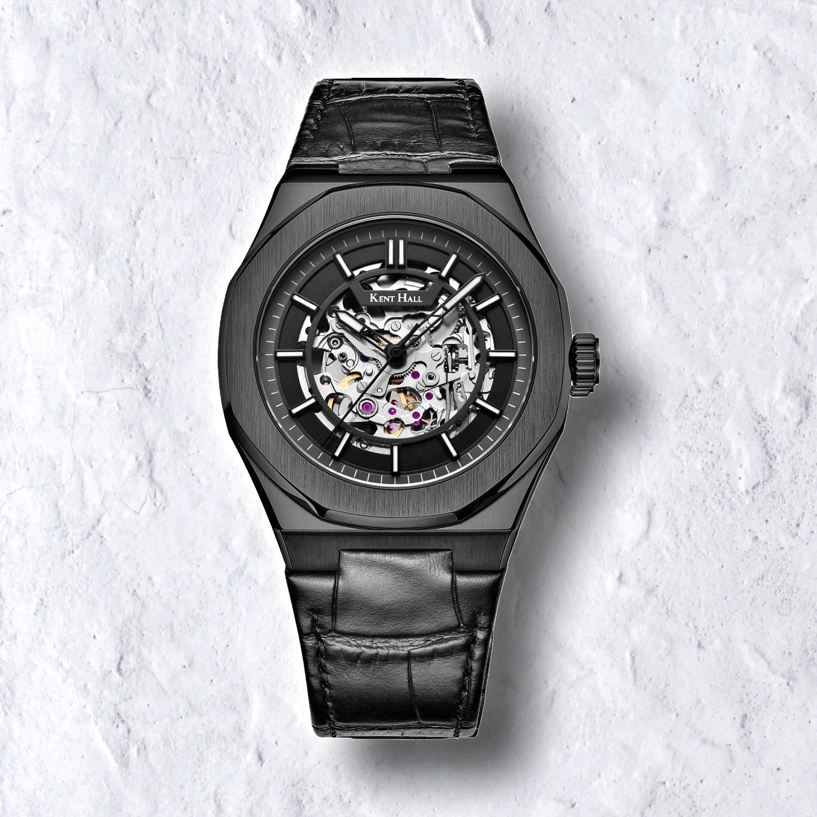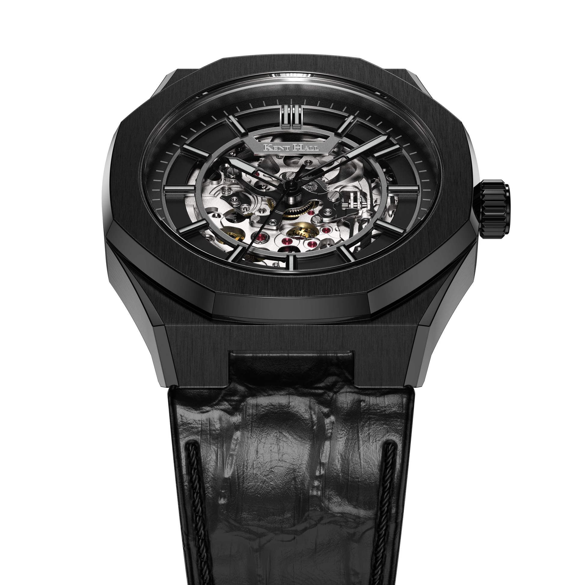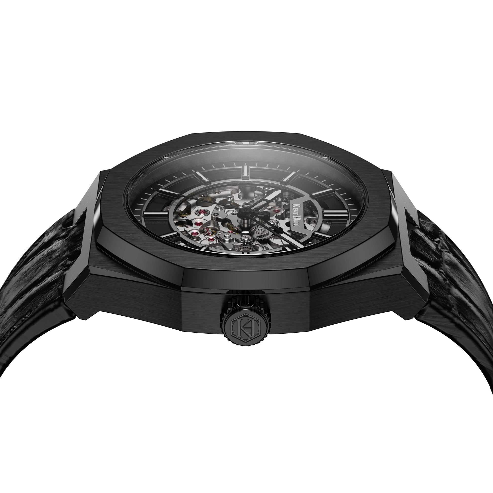 Expertly crafted with a contemporary urban aesthetic, the Raven Black Leather watch boasts a stainless steel construction with a scratch-resistant sapphire glass. Featuring a skeleton watch design and powered by a reliable Japan automatic movement with 42 hours of power reserve, it offers both style and functionality. Elevate your timepiece collection with this sleek and sophisticated watch.