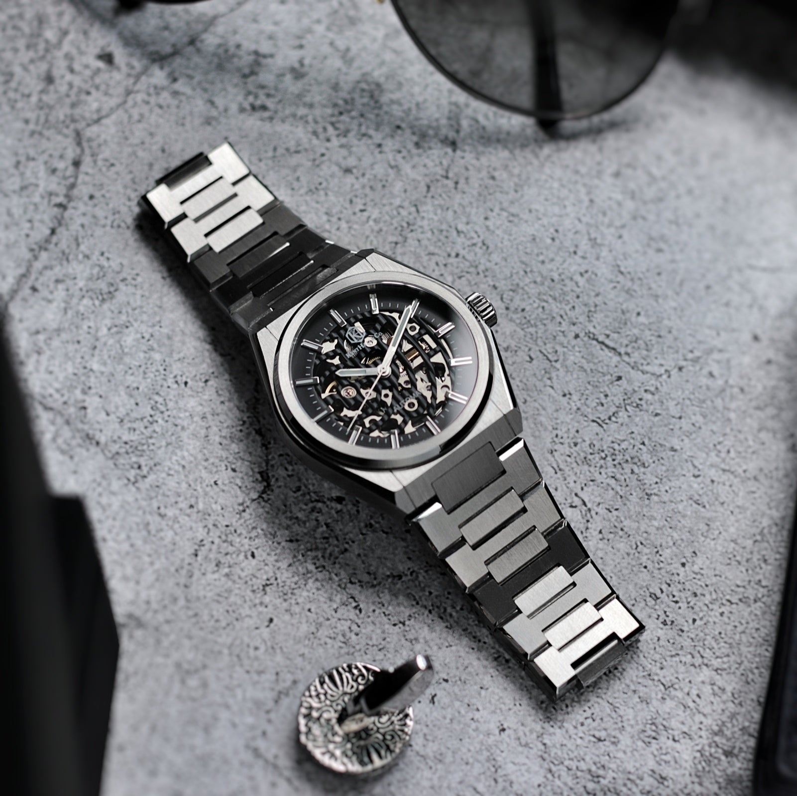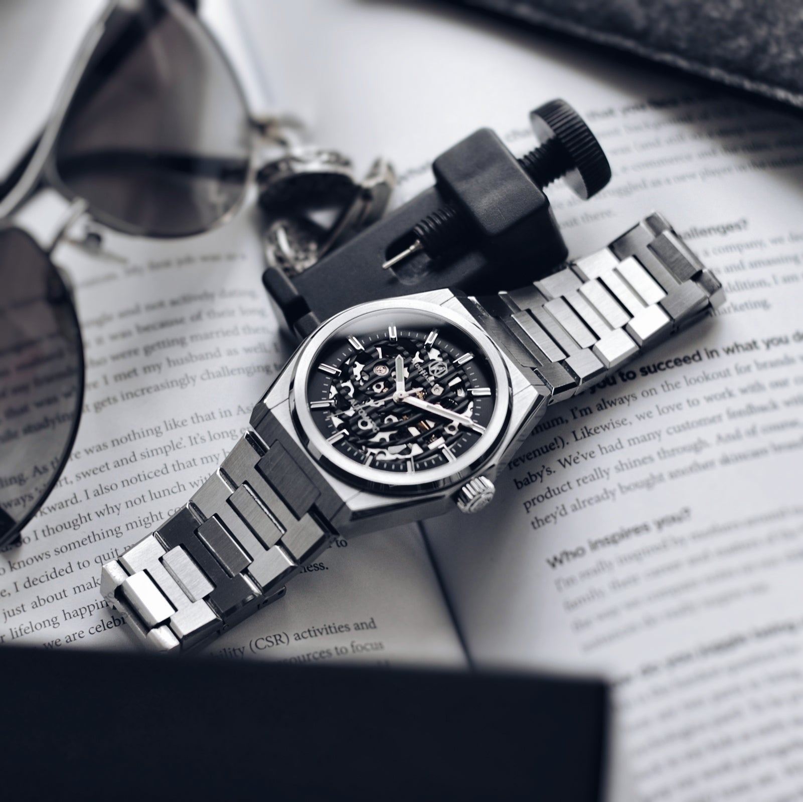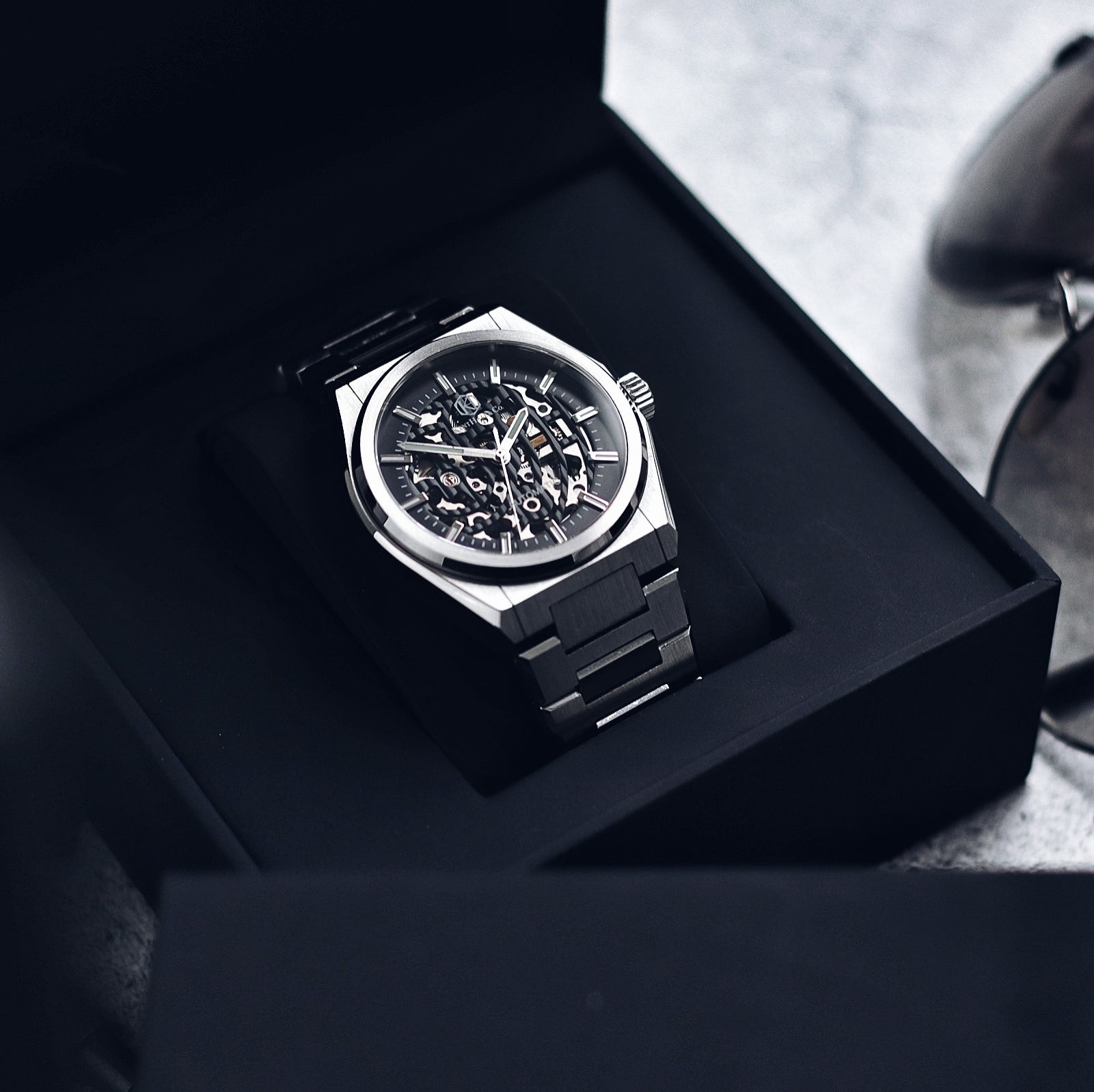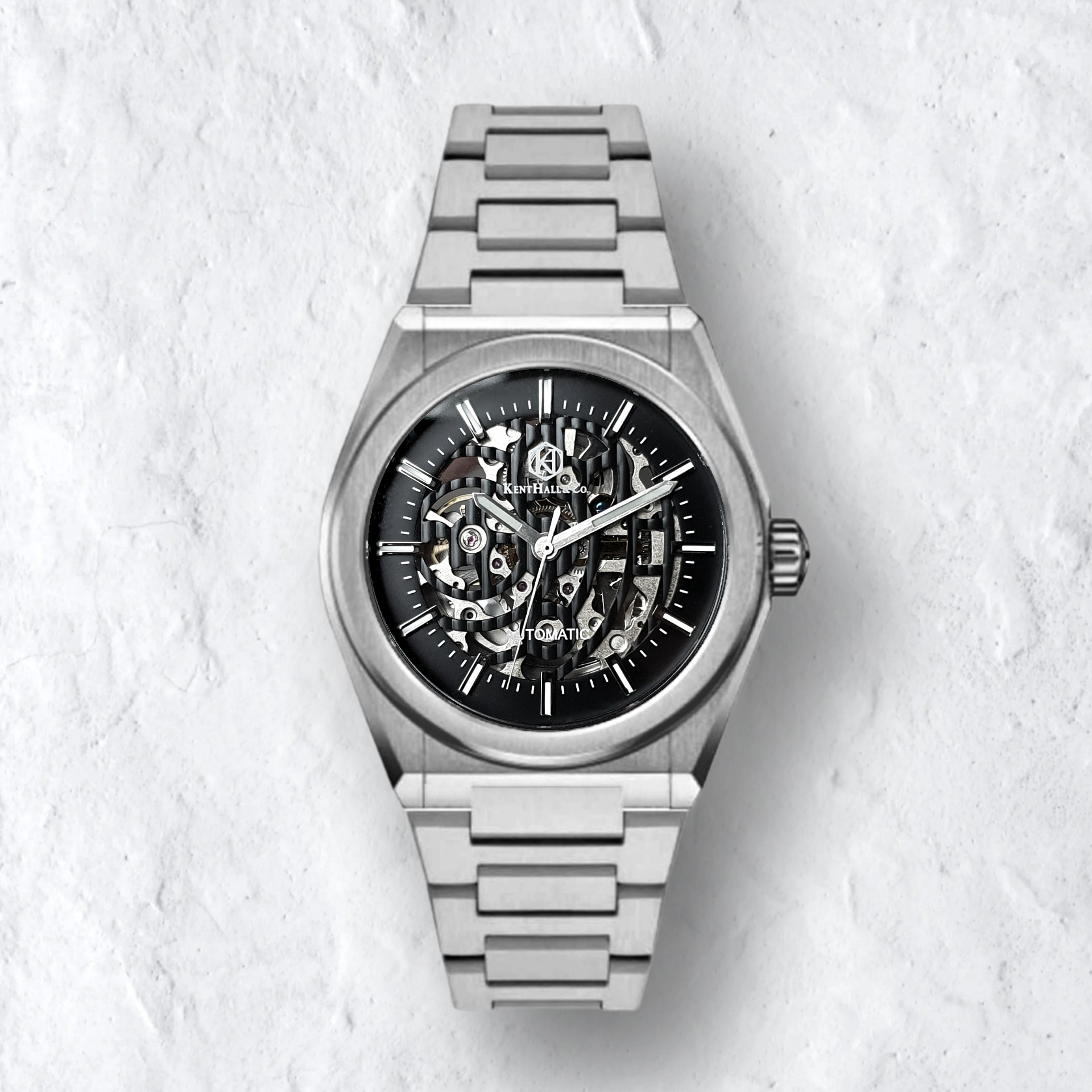 The Roman Steel watch features a striking skeleton dial, encased in 316L stainless steel case and matched with a clean metal bracelet. Part of the Nova Skeleton series, the timepiece is powered by an automatic movement with up to 36 hours of power reserve. The movement can be wound and is further powered by your kinetic movements such that you will never need to change batteries. Protected by 10 ATM water resistance and topped with ultra scratch-resistant sapphire crystal glass, this statement piece is a pleasure to behold.