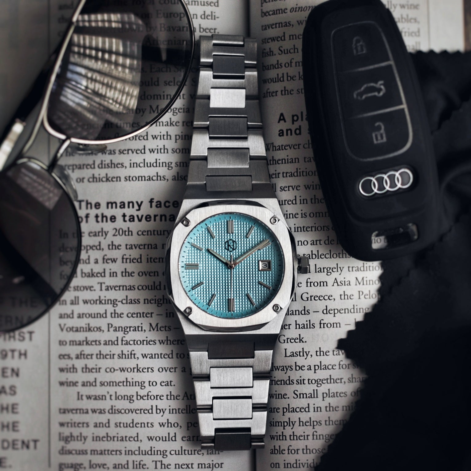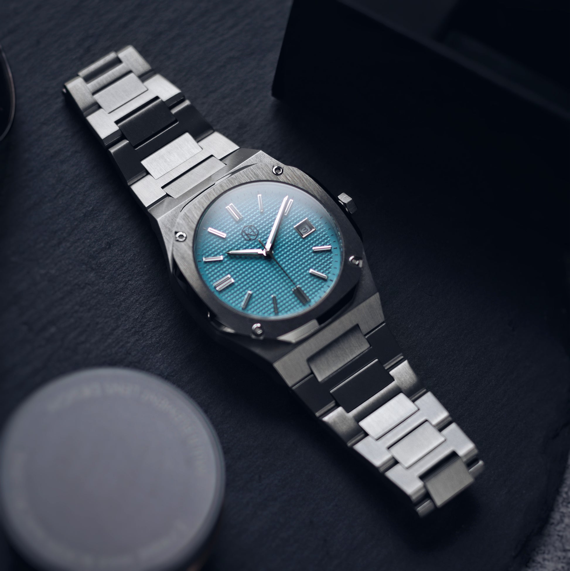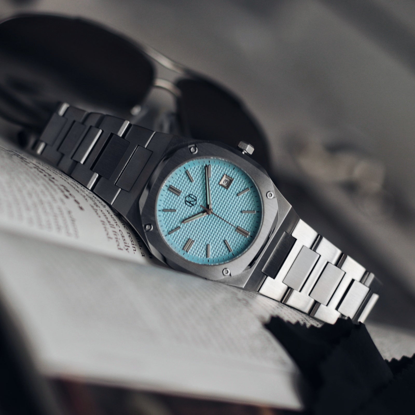The light blue luminescence on the hands and indices imparts a stunning elegance to the watch.