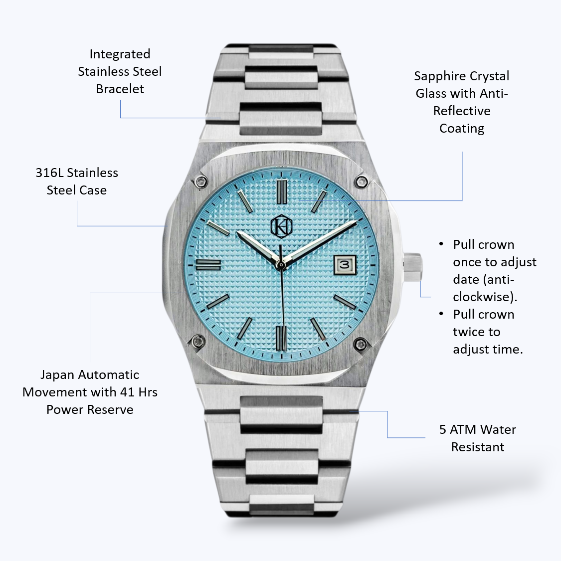 Powered by a reliable Japanese automatic movement with up to 41 hours of power reserve.